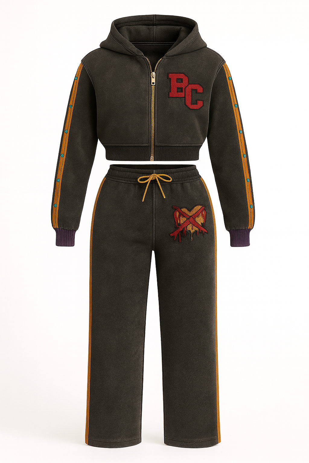 Step into your designer trap era with the Denim Dreams Tracksuit — a full-body statement built for confidence, comfort, and class.